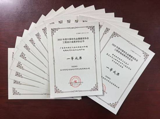10月31日,兰冶院收到中国有色金属建设协会颁布的2025年度工程咨询和工程设计成果评价证书,共有19项成果获得行业认可。其中,工程设计一等奖1个、二等奖3个、三等奖2个,工程咨询一等奖3个、二等奖5个、三等奖5个,获奖成果涵盖有色矿山、建筑工程、城建规划、工程造价咨询、固废利用、环境治理等多个专业领域。